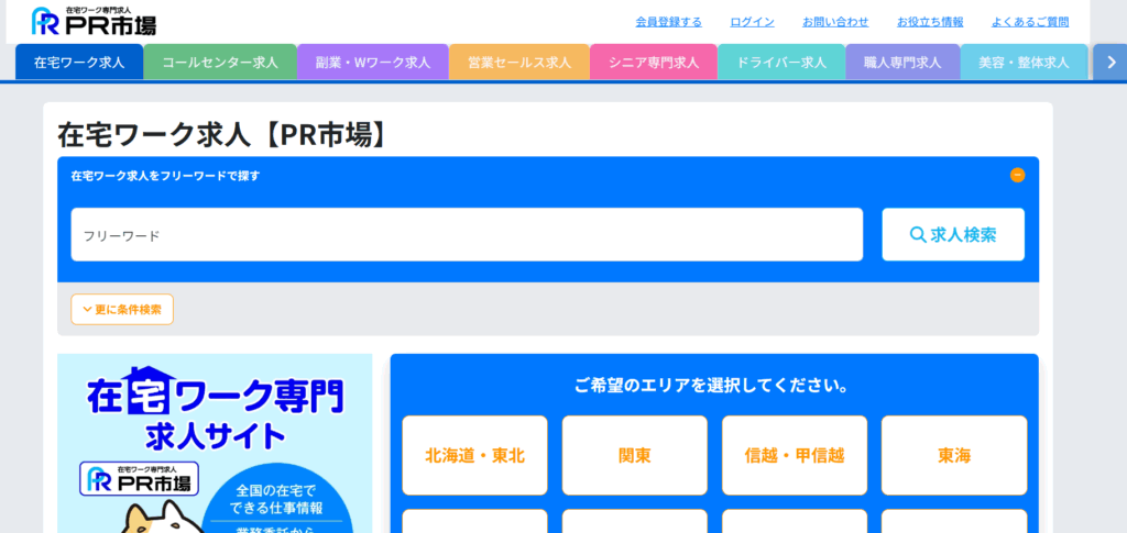 【PR市場】は在宅ワーク専門の求人サイトとして、全国募集から地域募集、完全在宅から一部在宅勤務まで多様な求人と新鮮な情報が満載。