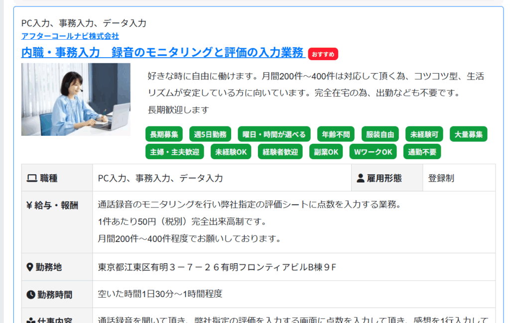 在宅ワークで探してみたところ、このような求人を発見。