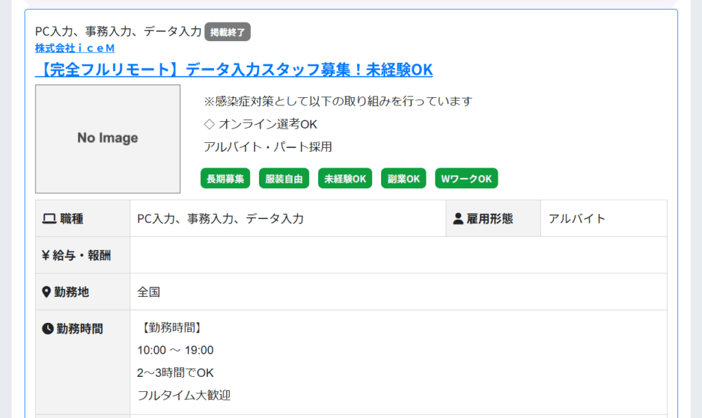 こちらはデータ入力の求人。
